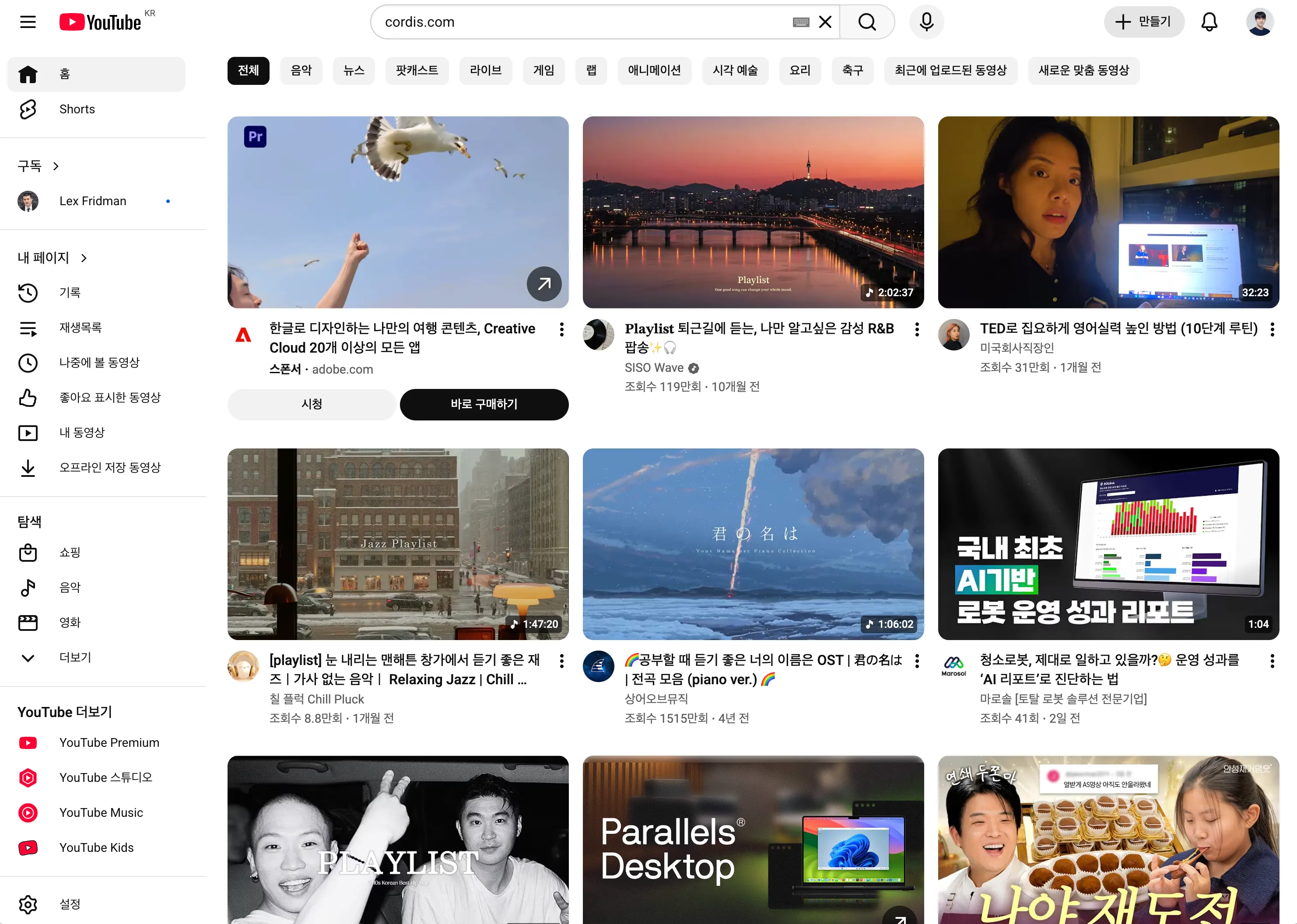 유튜브(https://youtube.com)에 접속하고, 회사 공용 구글 계정(Cordis Korea)을 새롭게 생성하고 로그인합니다.